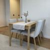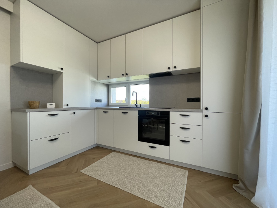 Apartamentul este nou, la prima închiriere, situat la etajul 1. Suprafața utilă este de 50mp, compartimentat în hol, baie cu dus walk-in, dormitor, living cu loc de luat masa, bucătărie, și balcon spațios cu masă și scaune.