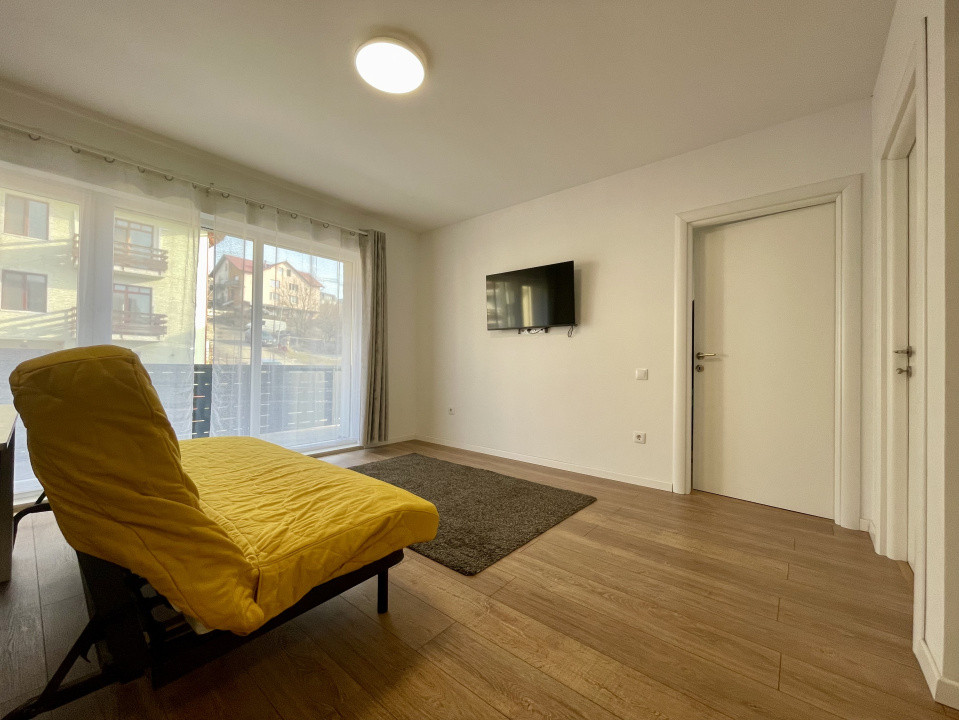 Propunem pentru închiriere un apartament nou, pe strada Ciocârliei din comuna Baciu. Zona a fost recent dezvoltată, având stradă asfaltată și cu acces ușor spre mijlocul de transport în comun, stația fiind la doar 500 m. Pe aceași stradă găsiți un magazin Profi City, iar în raza de 2 km aveți acces la mai multe supermarket-uri, bănci, săli de sport, etc.
