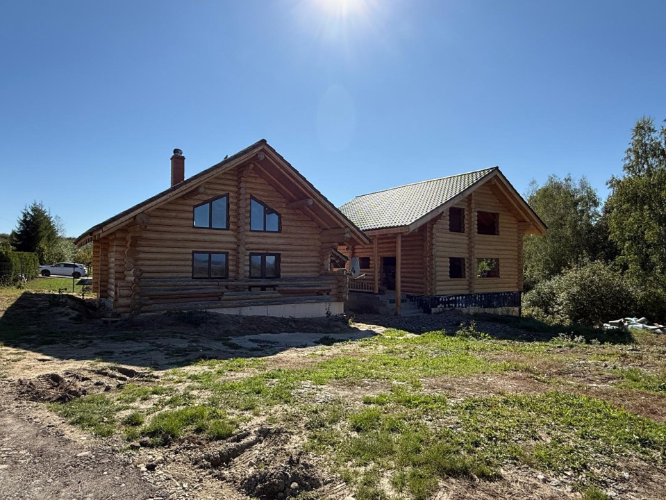 Tot din lemn rotund, acoperiș Creaton montat.