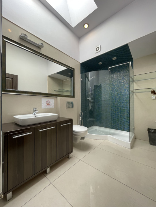 Suprafața utilă este de 130mp compartimentați în hol, 2 săli de sedințe/birouri, sală mare, sală pentru depozitare, 2 băi, bucătărie și terasă.